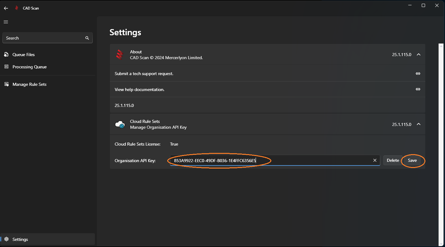 Enter your organisation API key in the highlighted box in the image below and click Save.