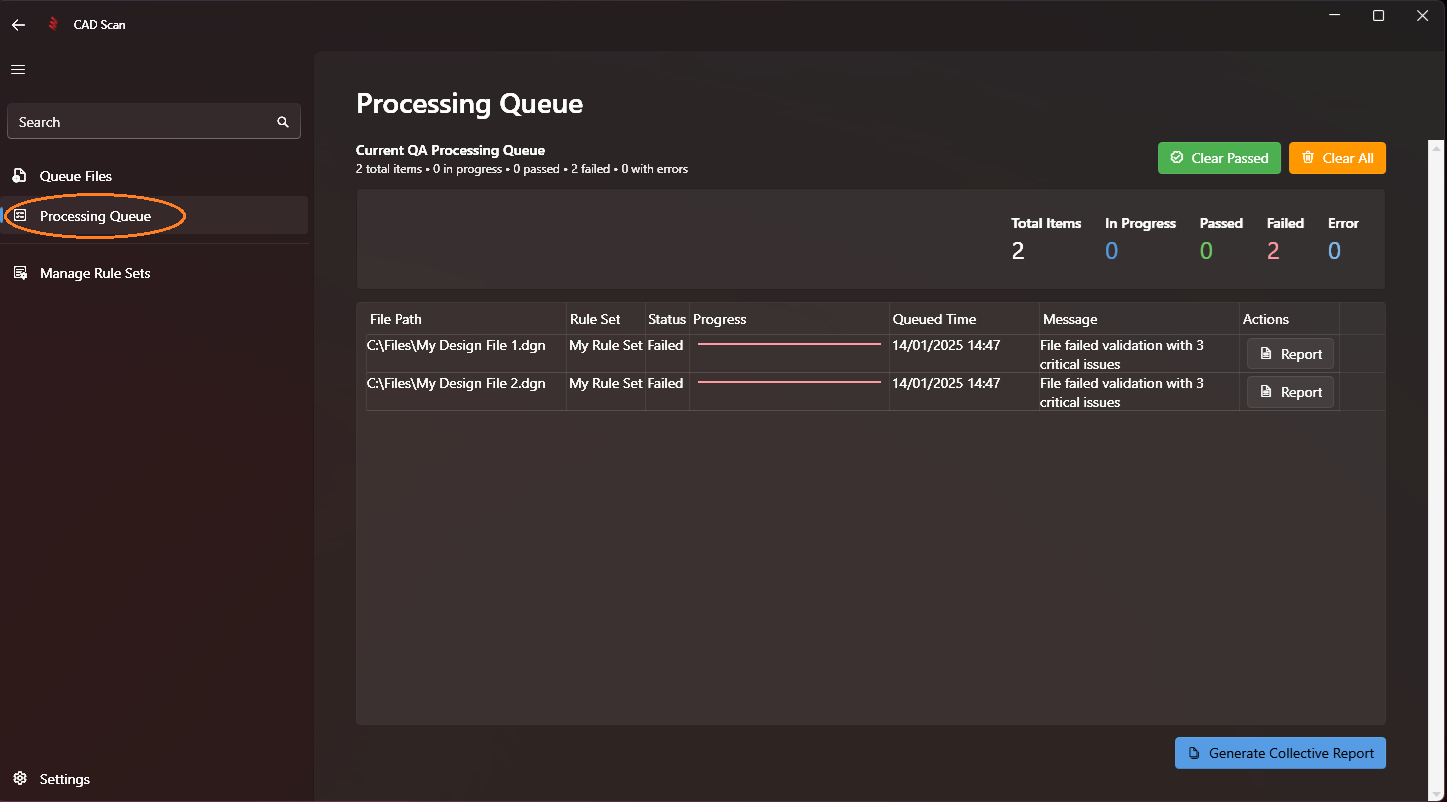 Open the processing queue by clicking the 'Processing Queue' button in the left navigation menu.