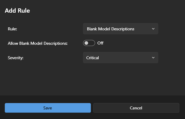 - Allow Blank Model Descrptions - a toggle value ON / OFF