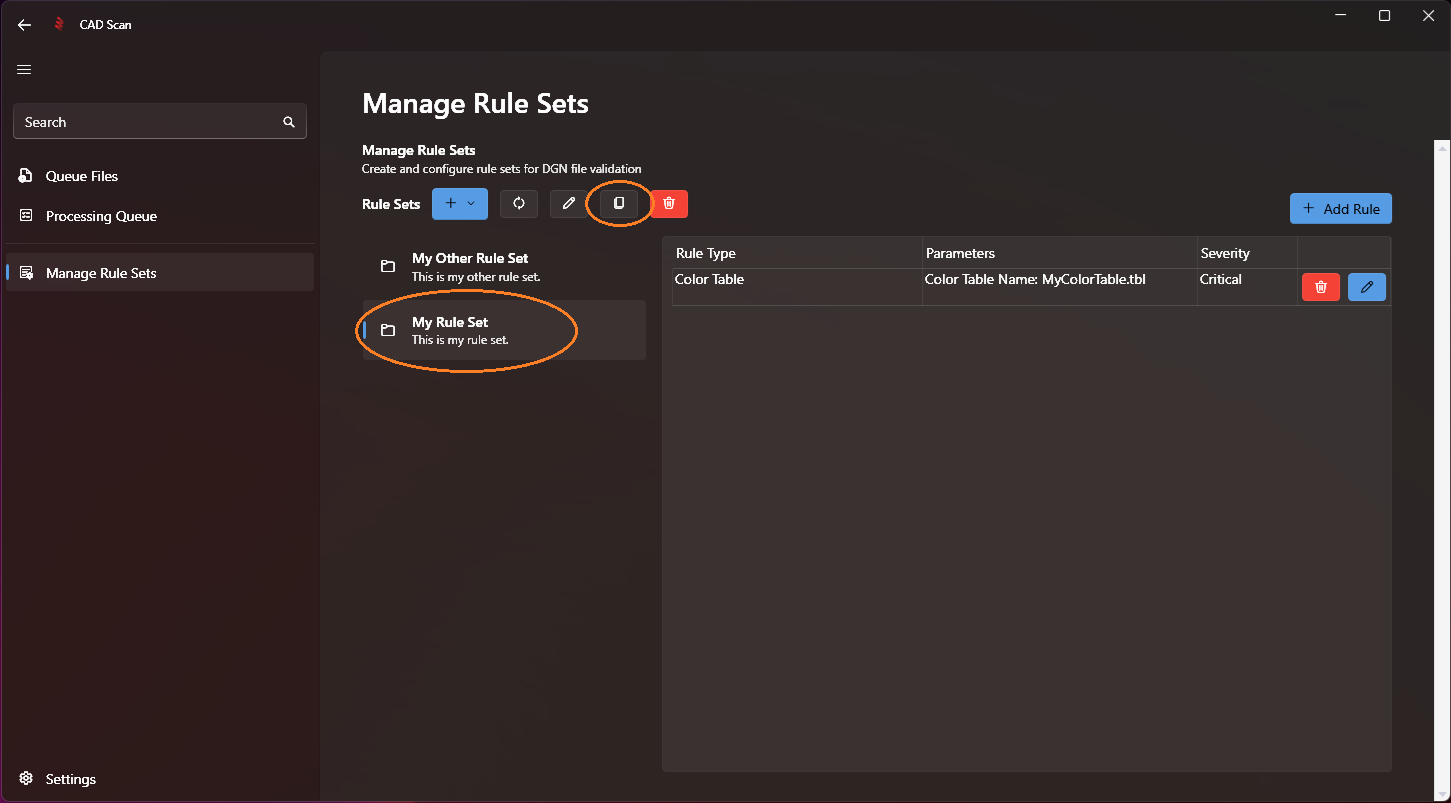 Select the Rule Set to copy from the list of rule sets, and click the copy button.