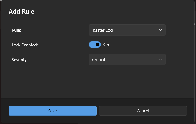 If you want to check that all rasters in a DGN file have lock enabled then add this Rule to your Rule Set with ON as the toggle parameter value as in the below screen shot: